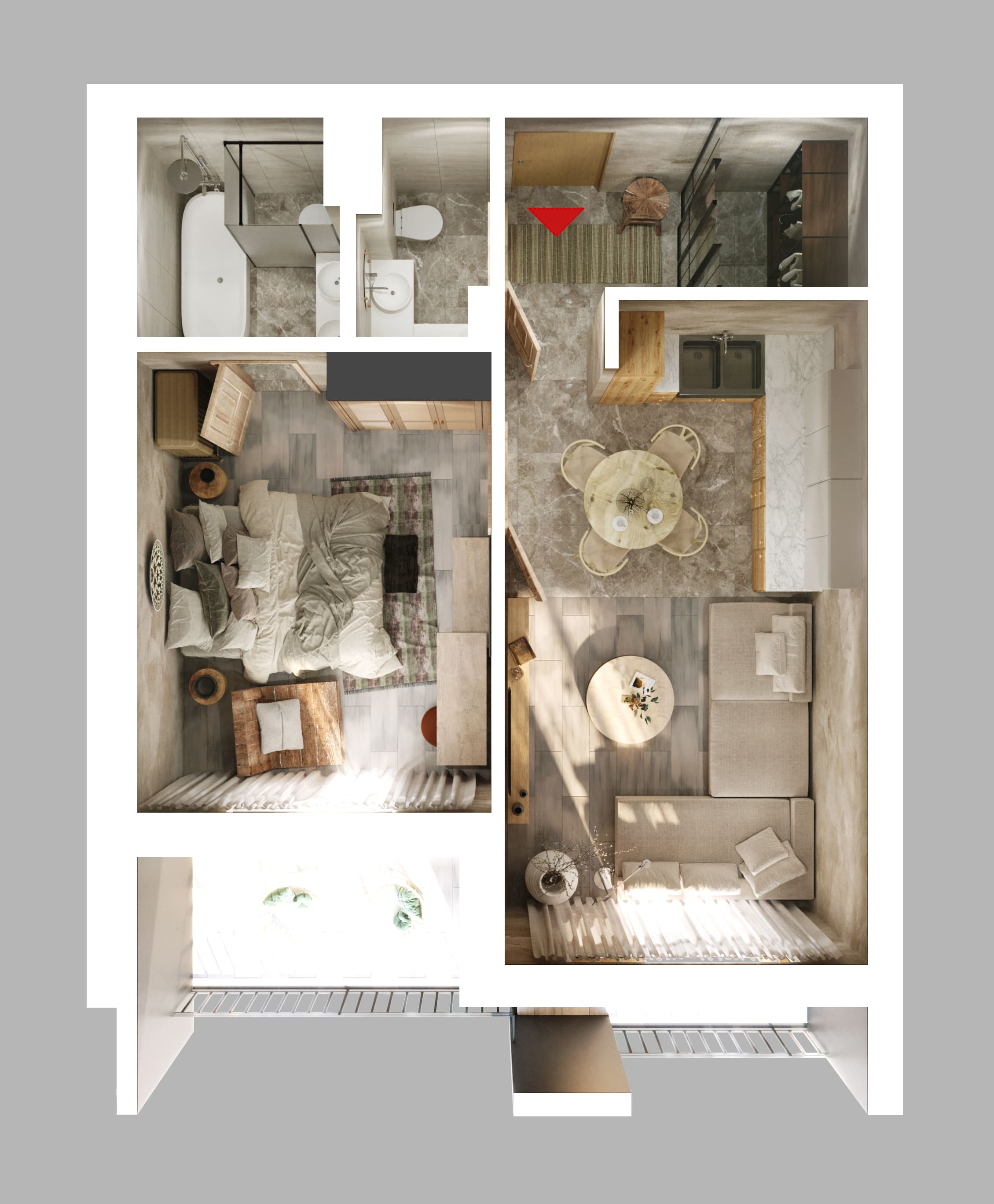 Индивидуальные открытые террасы. Больше пространства - ваш уголок свободы в сердце города. Отдыхайте с потрясающими видами и свежим воздухом.
