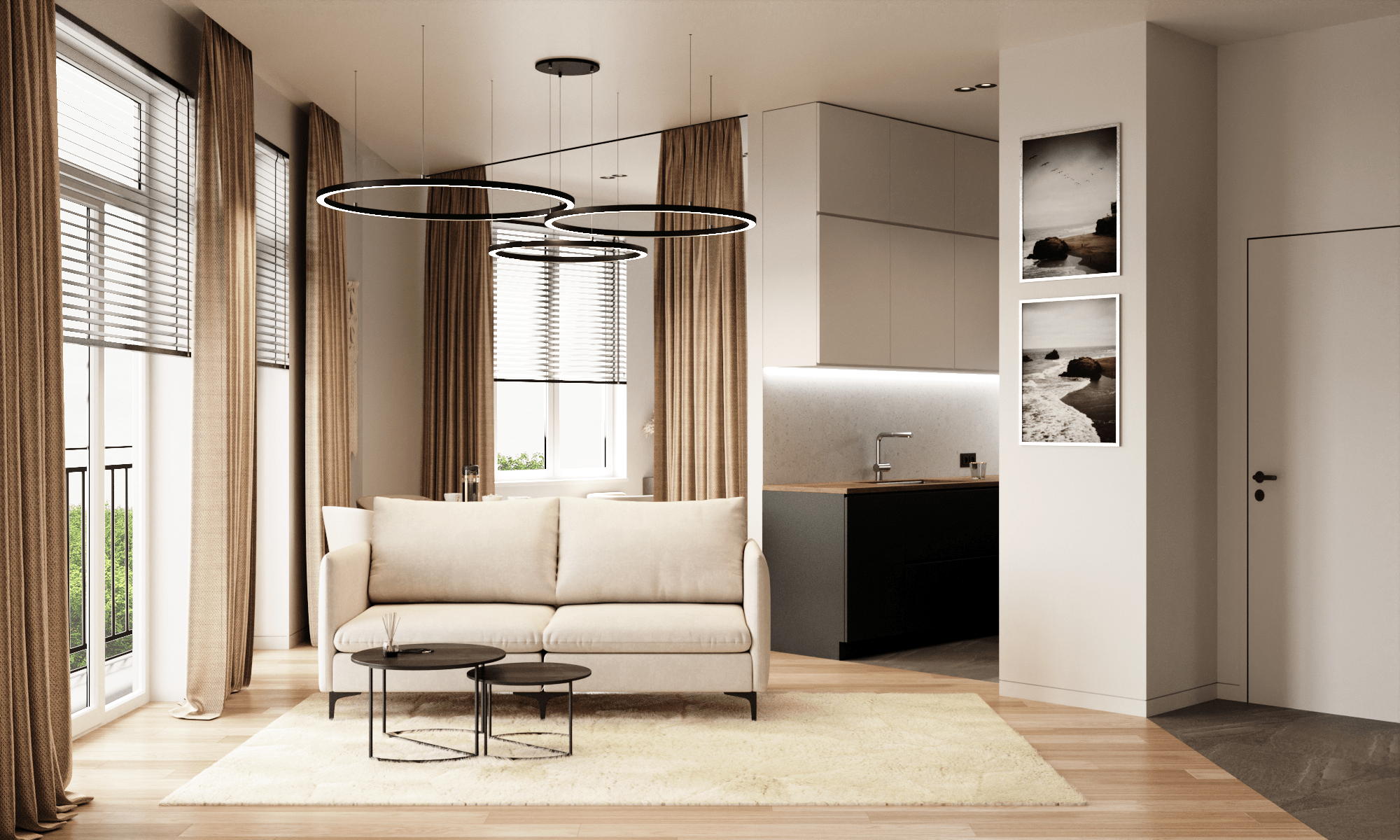 Широкие панорамные окна.Начните утро с завораживающим видом на небо и наслаждайтесь вечерними огнями Калининграда, не покидая уюта своего дома.