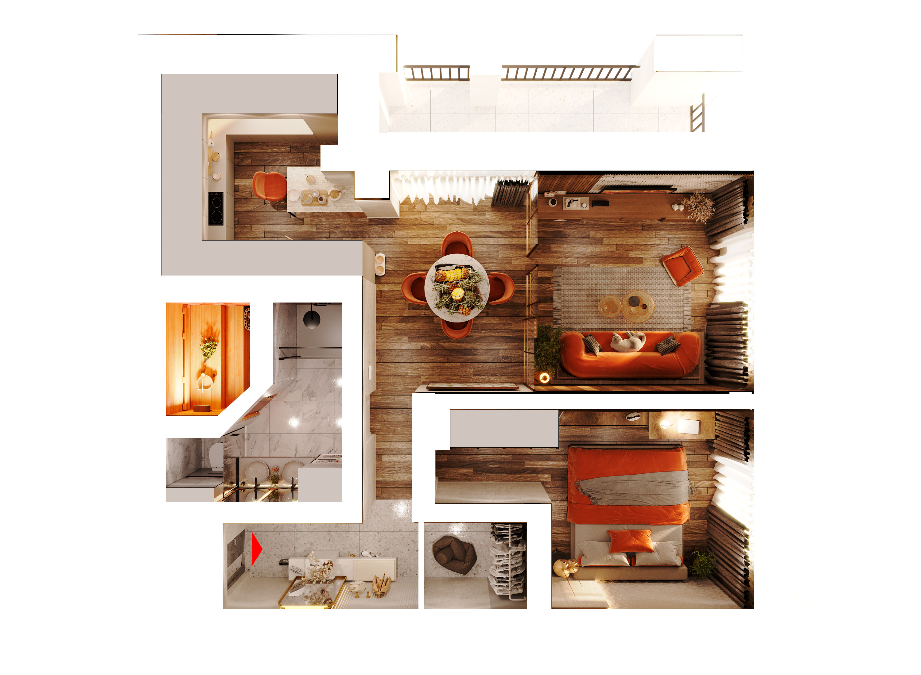- Собственная терраса и сауна в каждой квартире;