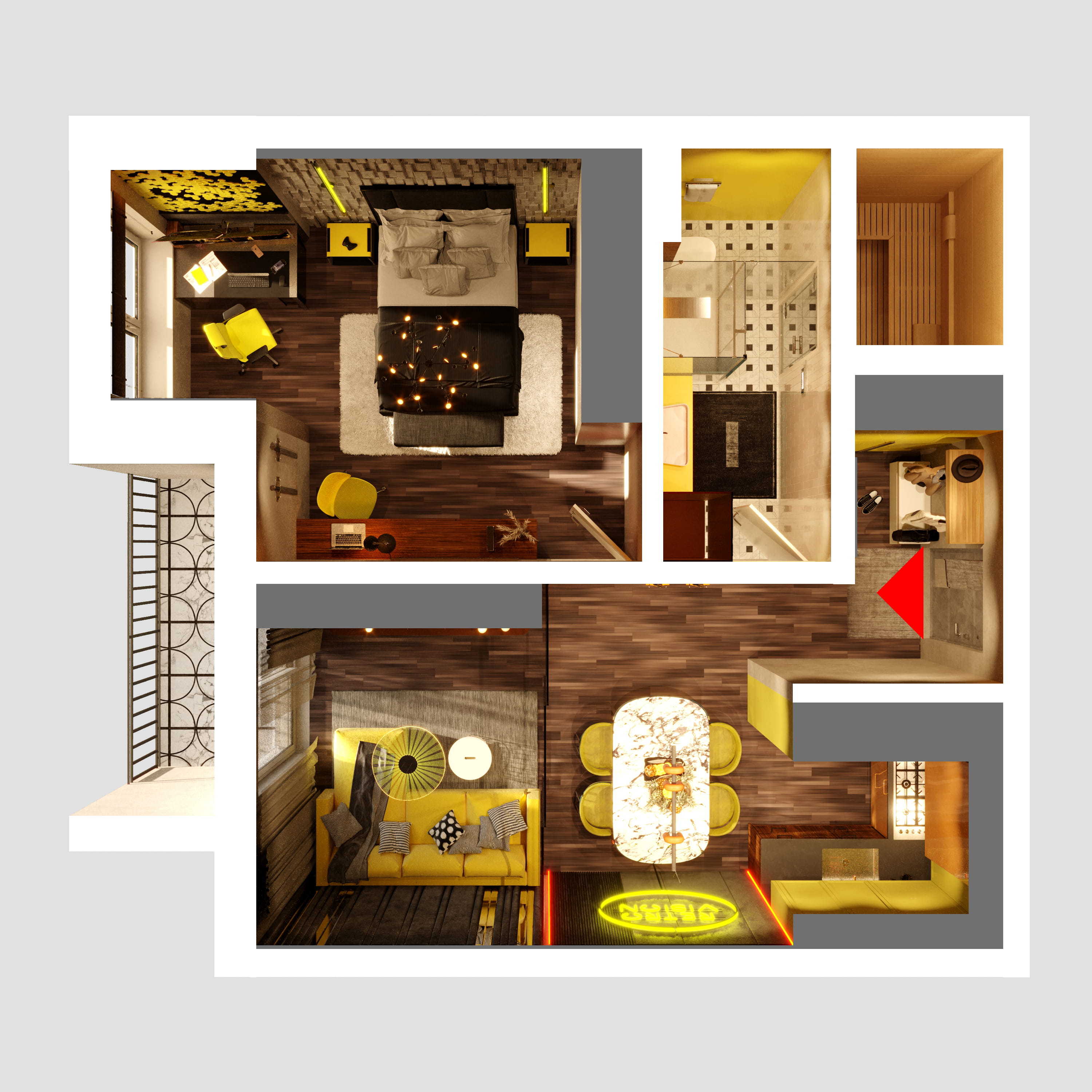 - Собственная терраса и сауна в каждой квартире;