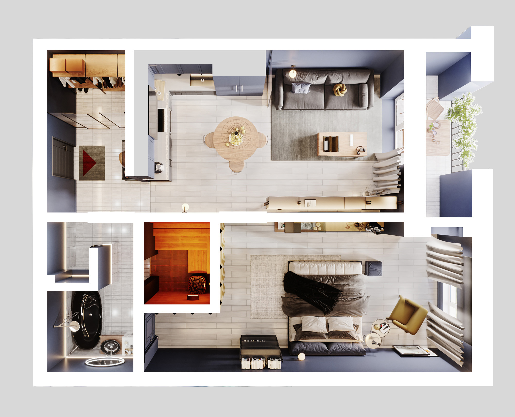 - Собственная терраса и сауна в каждой квартире;