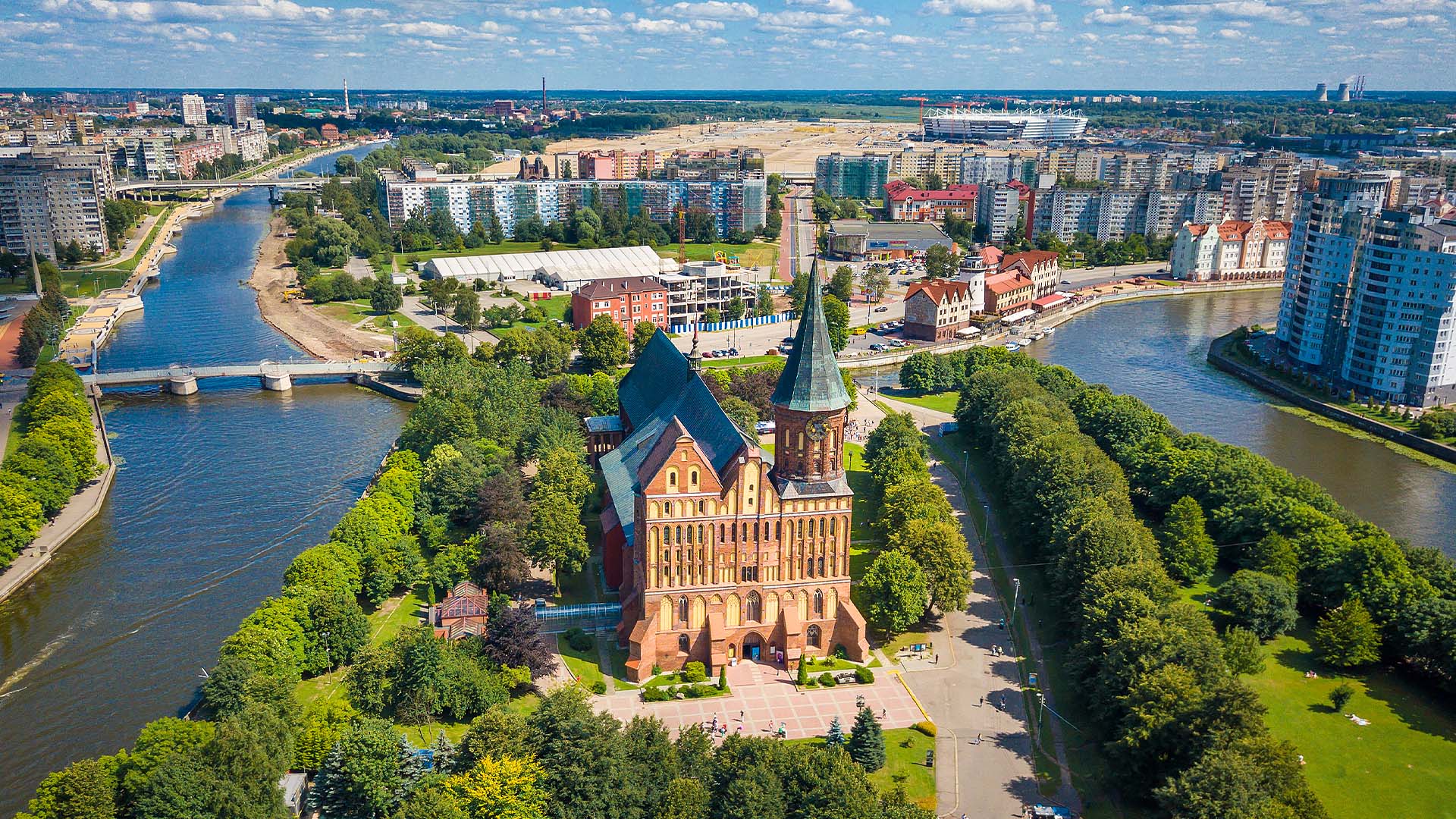 Тихие газоны у кафедрального собора сохраняют ровный микроклимат благодаря расположению вдали от автодорог. В летний сезон прохлада липовых аллей создаёт комфорт даже в полуденную жару. Остров Канта в Калининграде оборудован урнами и ночной подсветкой, поэтому комфортно оставаться до самого заката.