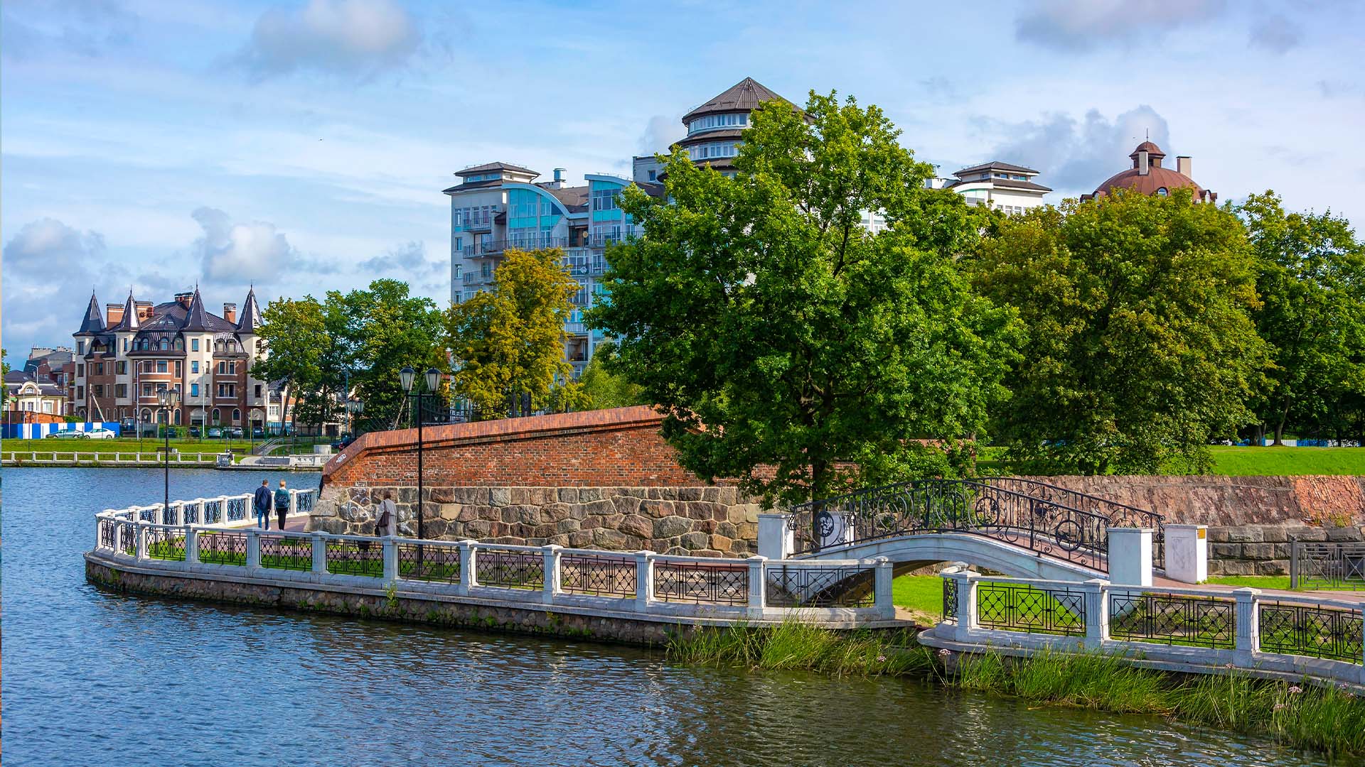 Променад вдоль западного берега защищён от ветра густой растительностью, способствующей звукоизоляции. В ясный день зеркало пруда отражает башенки старых вилл — получается настоящий insta-фон.