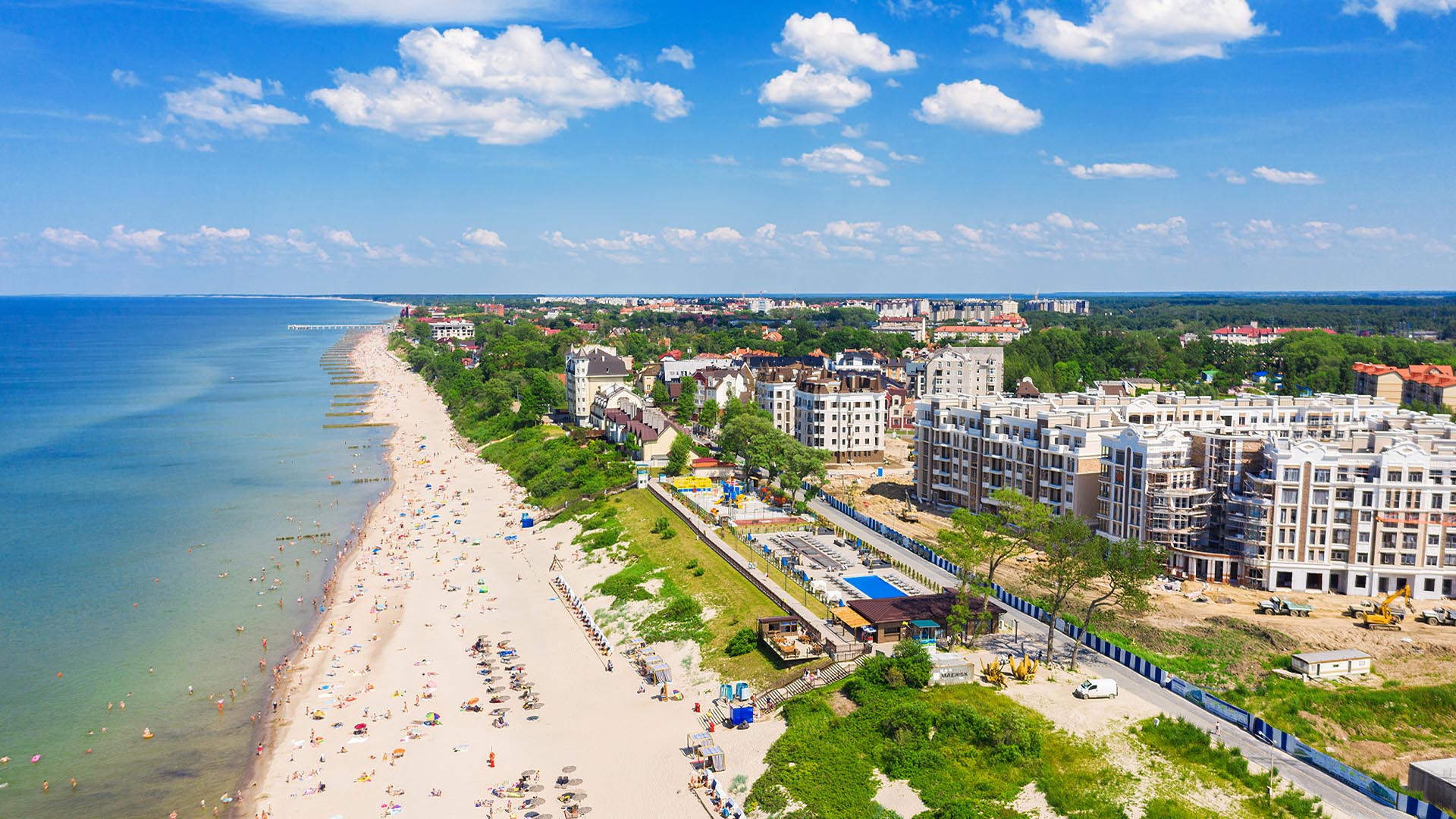 Если нужен цивилизованный отдых с душем, кабинами и лежаками, отправляйтесь на пляж в Янтарном с маркировкой «Голубой флаг». Широкая береговая линия позволяет расположиться подальше от шумных кафе и разложить гриль-сет прямо на песке. По соседству — велопрокат, водные аттракционы и смотровая площадка над карьером, где добывали солнечный камень. Дорога из Калининграда занимает час на автомобиле: удобно выехать утром, провести день у моря и вернуться к ужину.