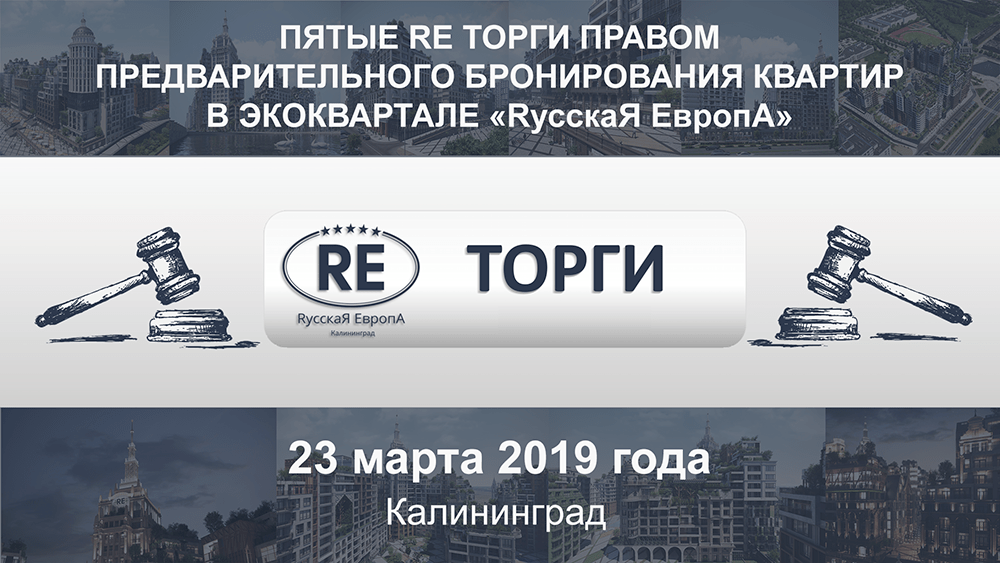 22 марта 2019 г.Приглашаем вас принять участие в Пятых RE Торгах правом предварительного бронирования квартир в Happy City «RусскаЯ ЕвропА», г.Калининград.