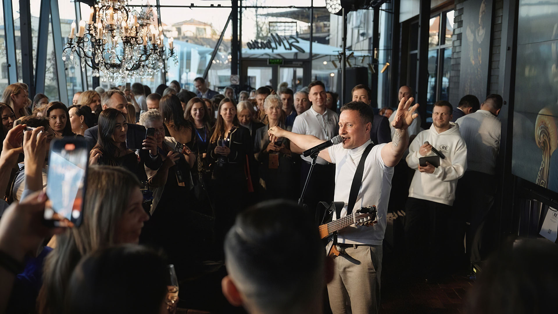 После насыщенной деловой программы состоялись 105-е юбилейные торги квартирами в ЖК «Вдохновение». Атмосферу единения и веры в профессию создал музыкант Дмитрий Волков, исполнивший «Гимн риелтора».